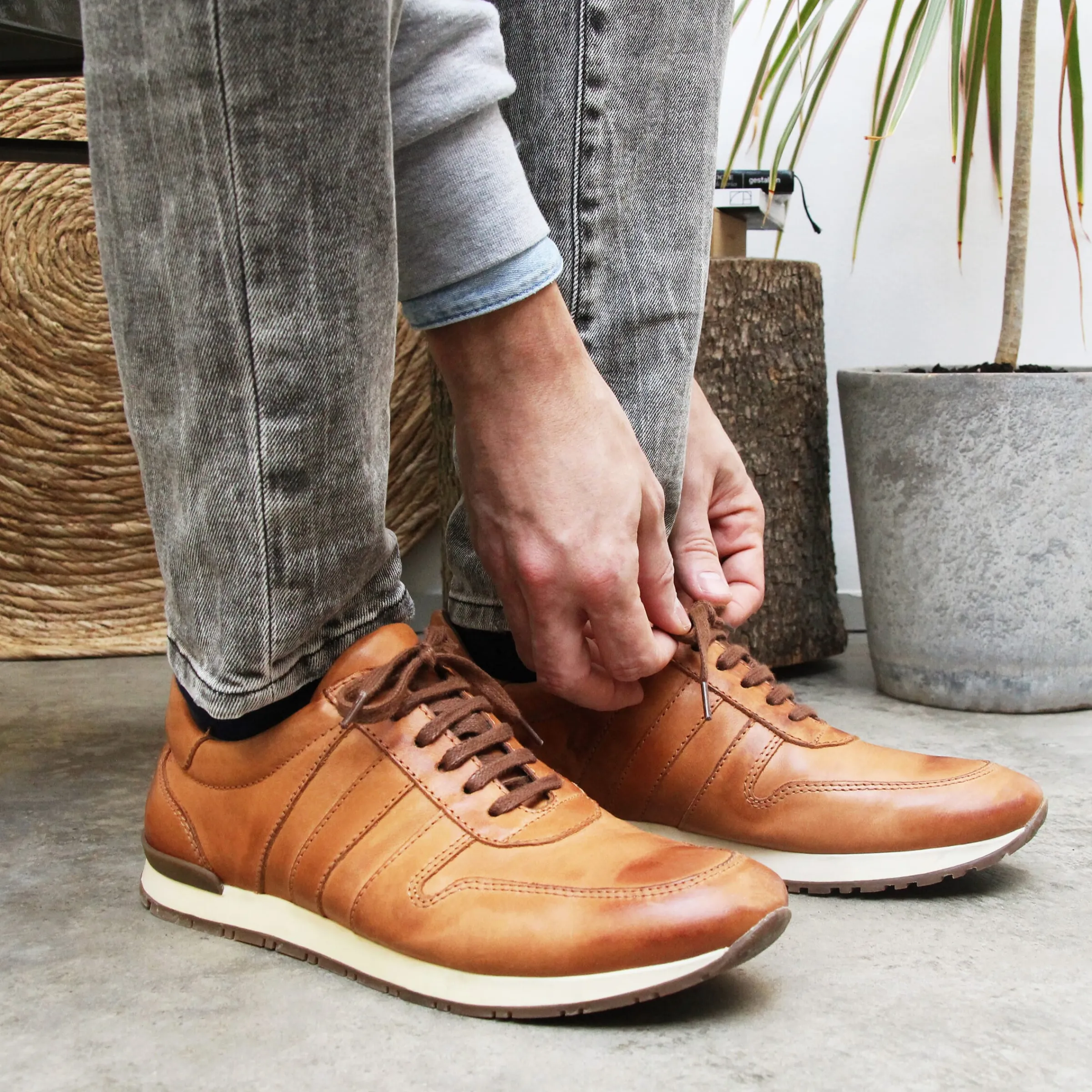 - Sneaker homme en cuir lisse patiné