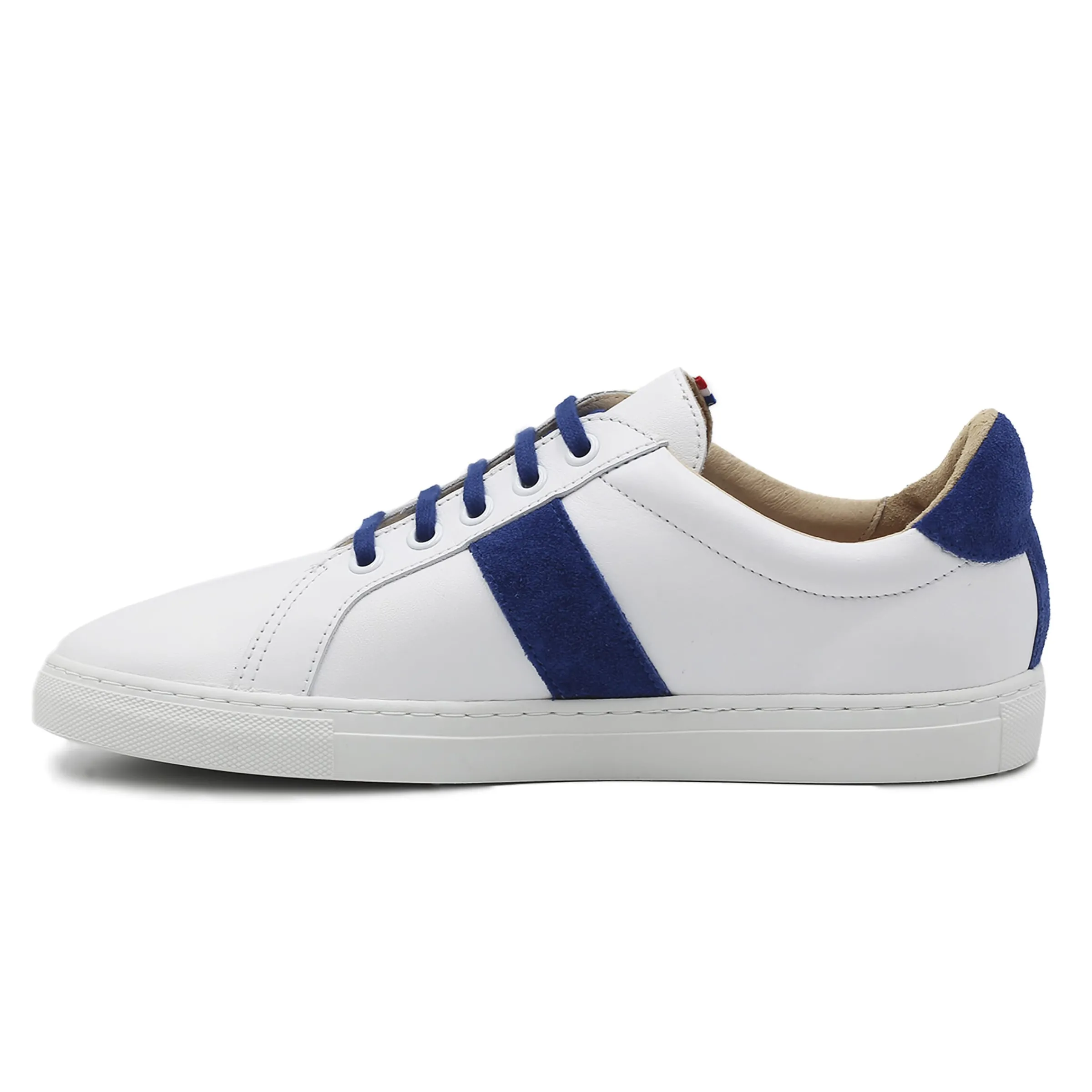 - Etiquette tissée tricolore cousue sur la languette