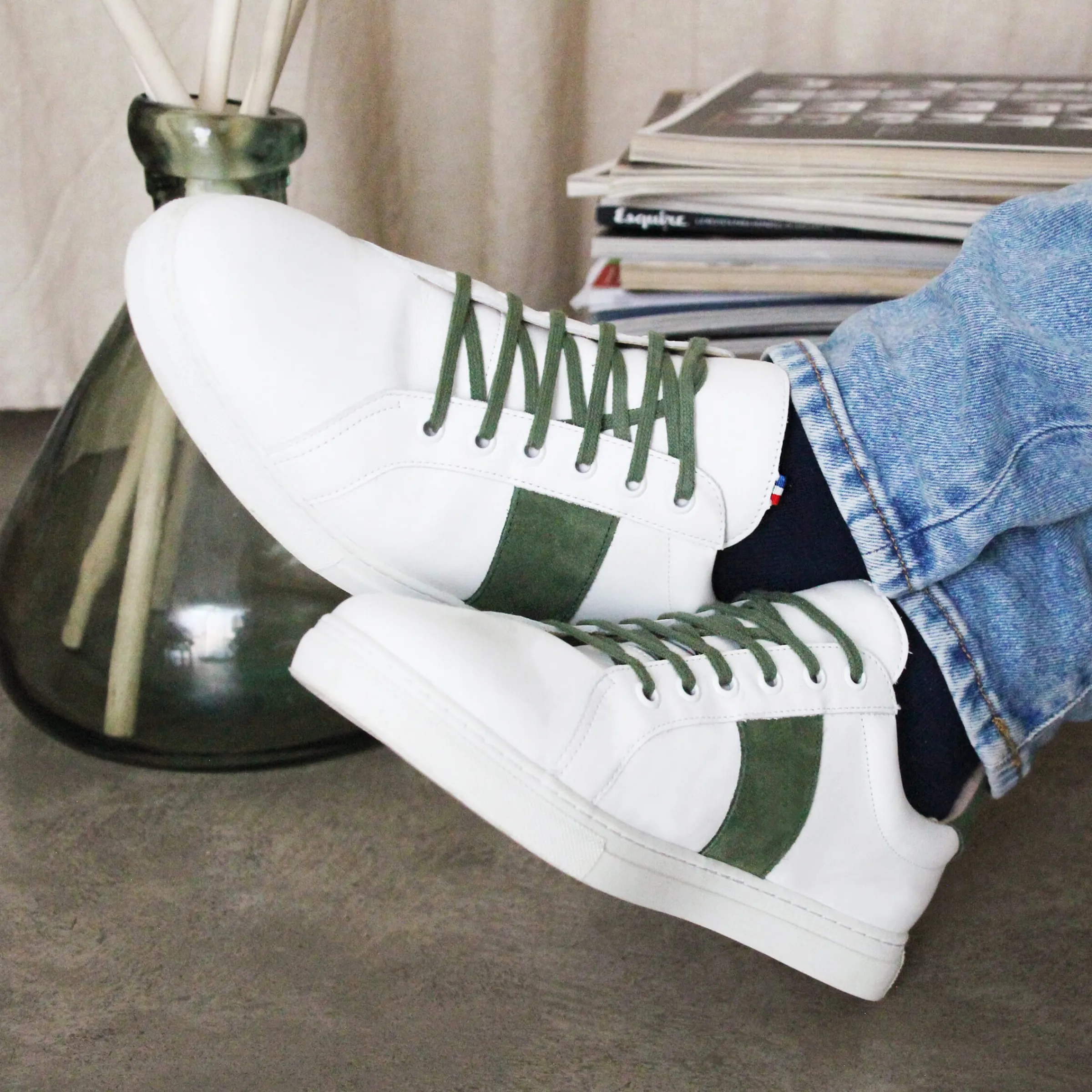 - Empiècements en cuir de veau velours kaki d’origine Italie