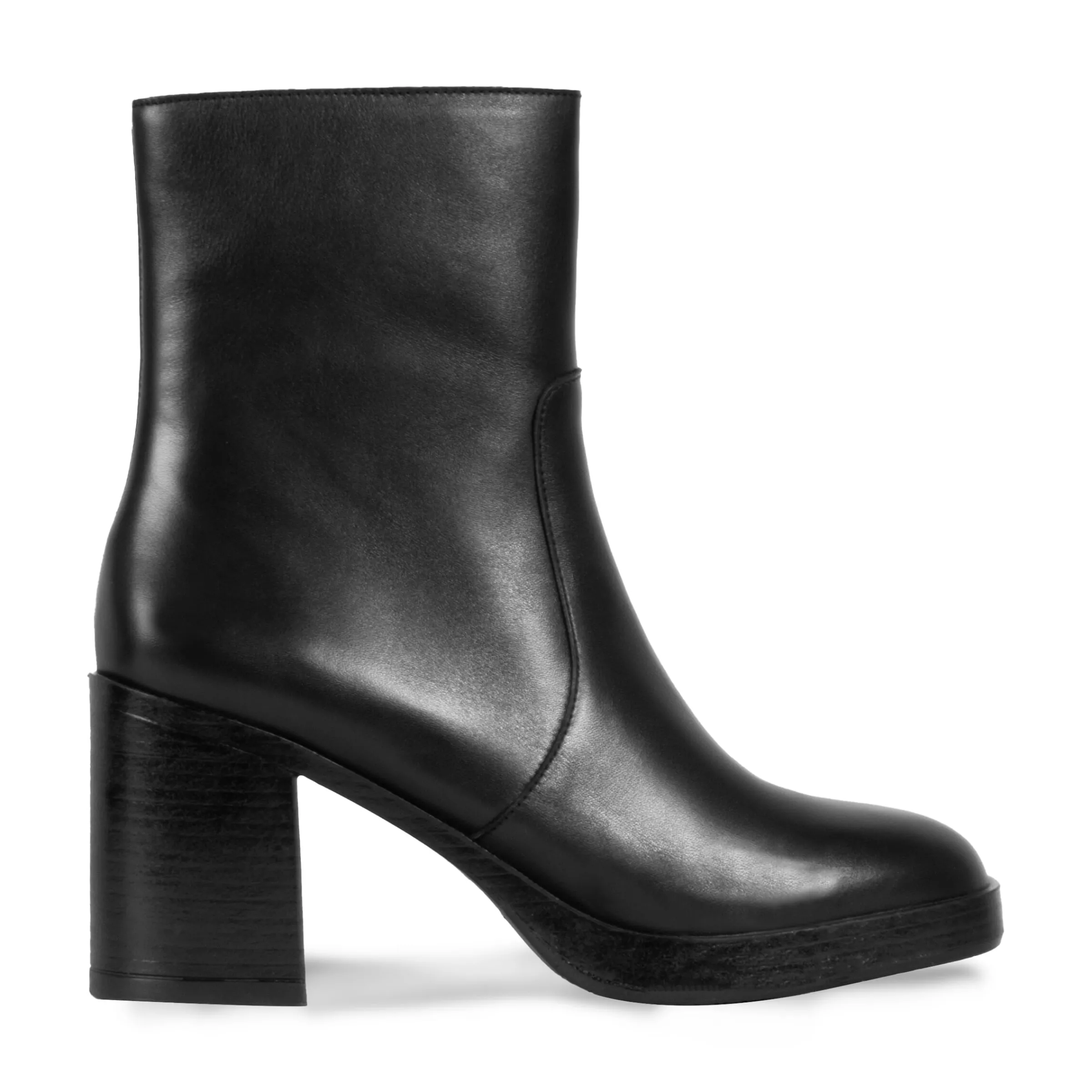 - Bottine plateforme à talon femme en cuir lisse