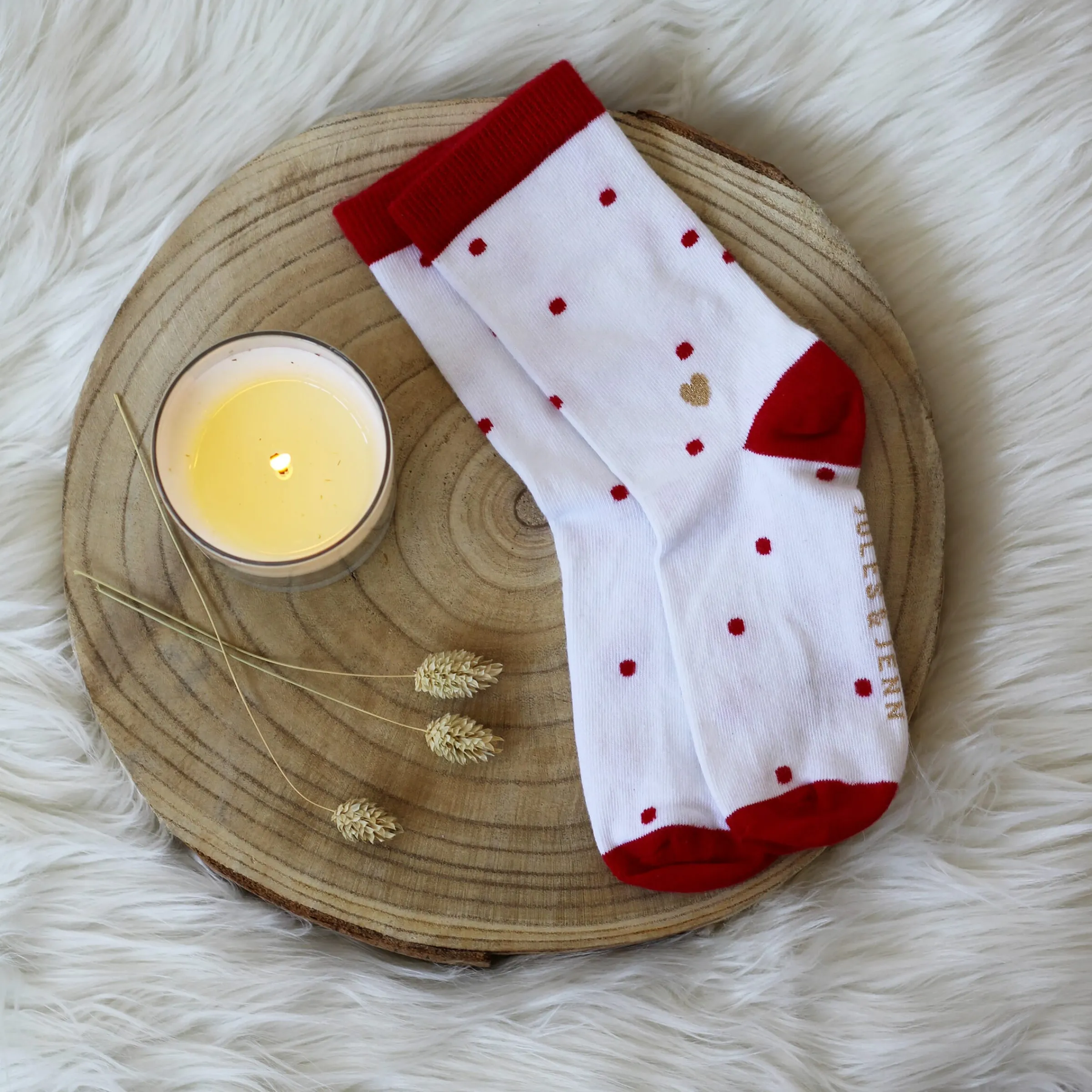 - Logo JULES & JENN sous le pied, tricoté en doré