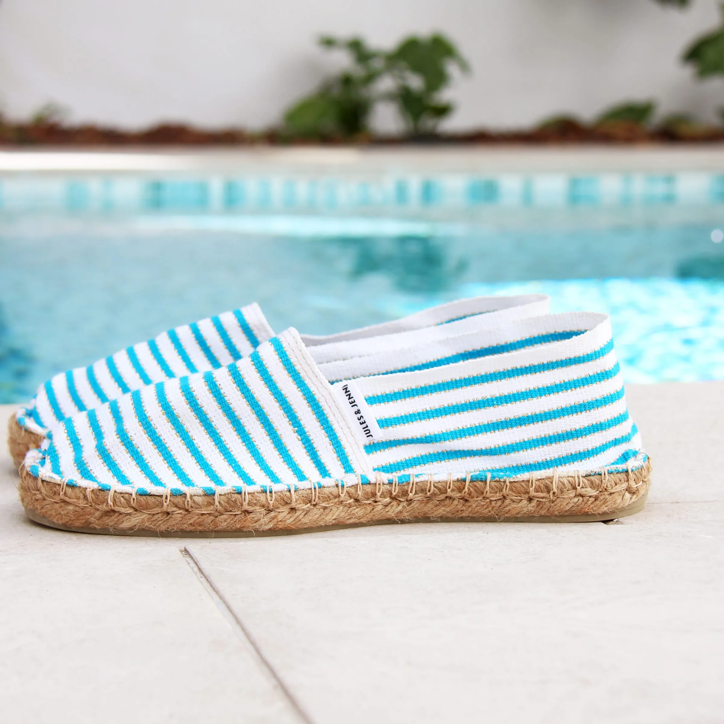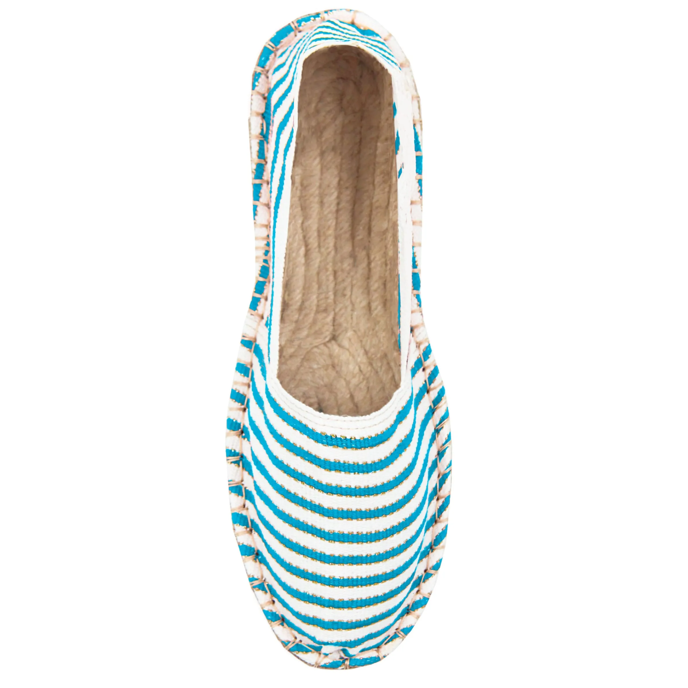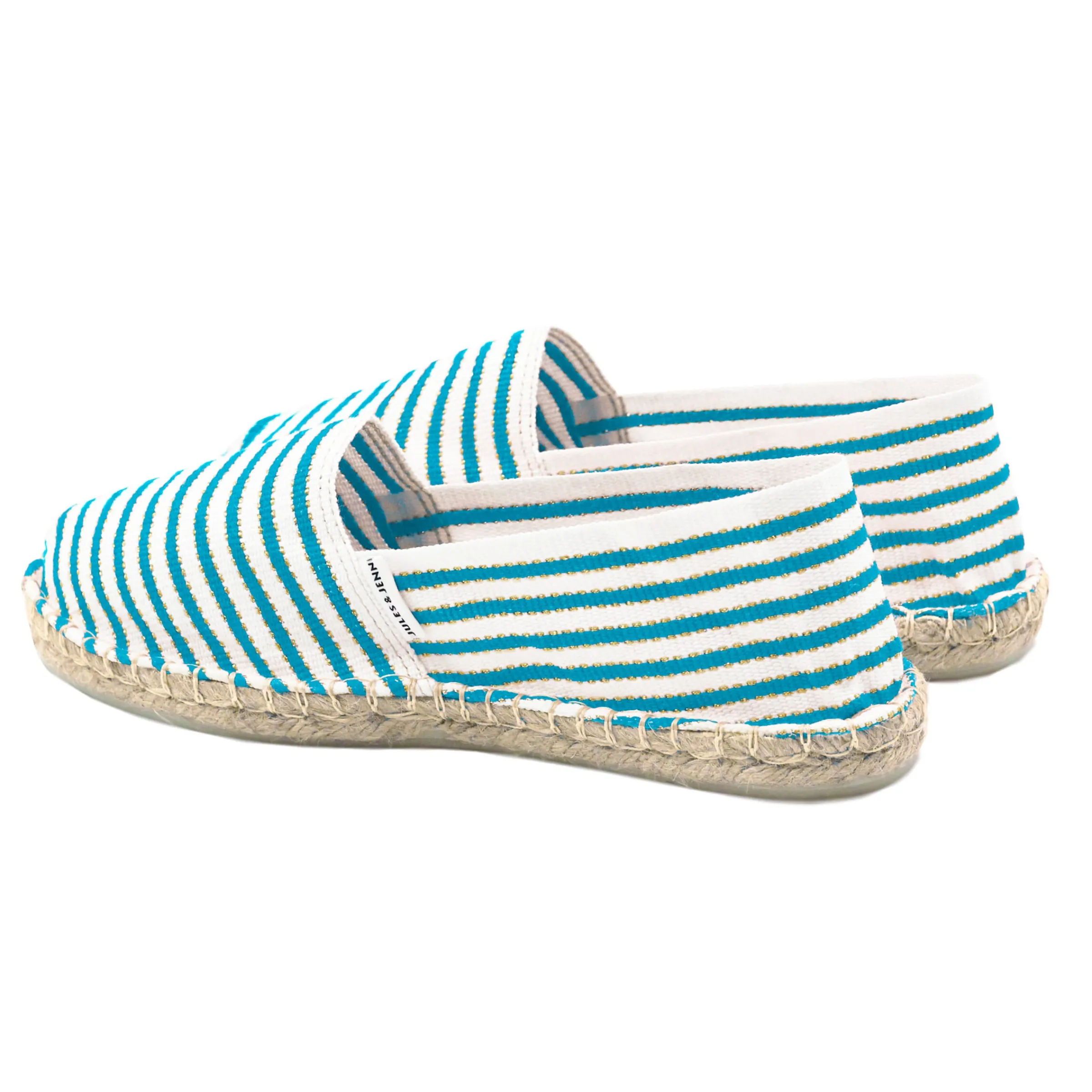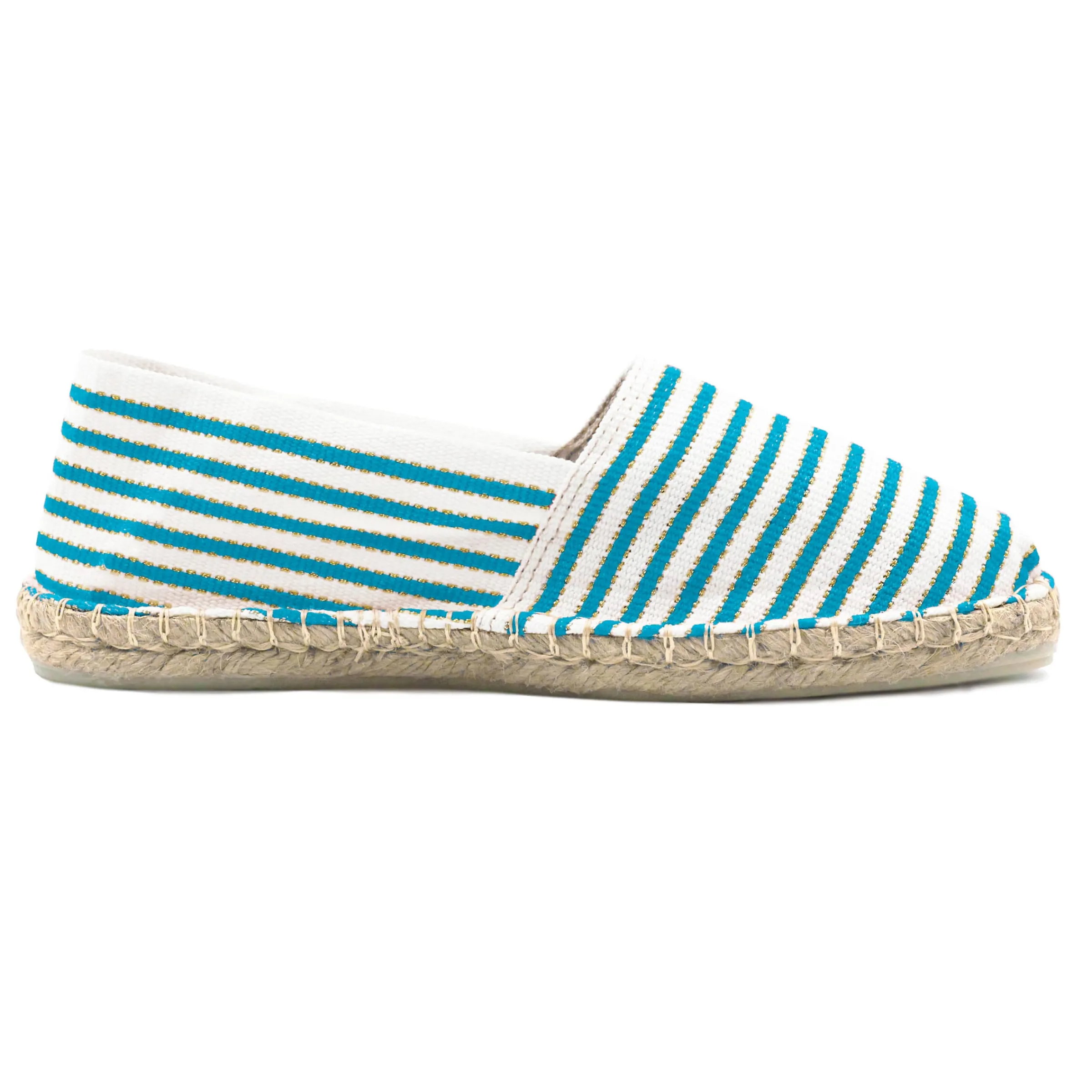 - Espadrilles en toile de coton rayée turquoise & doré non doublé