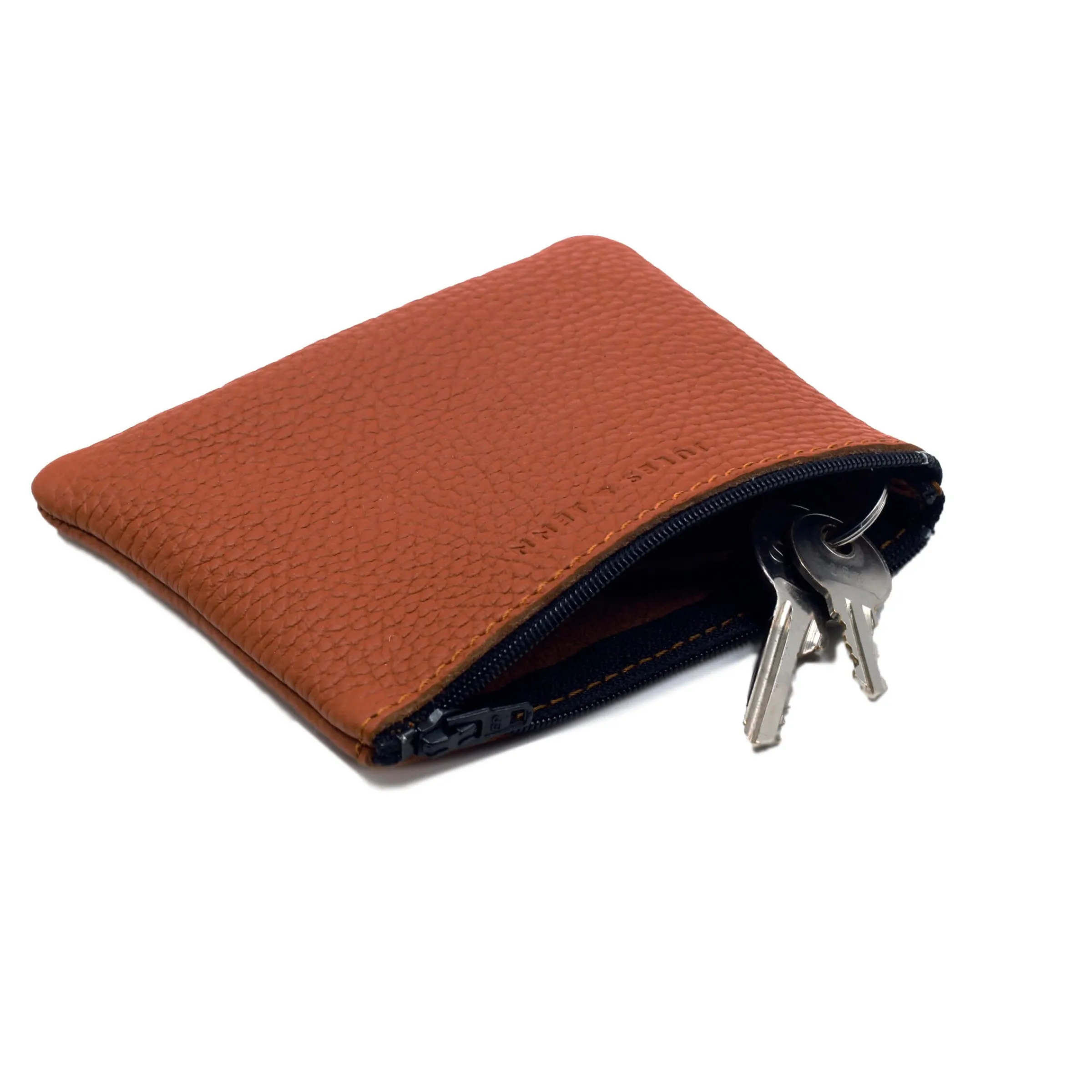 - Pochette en cuir grainé brique d’origine Italie