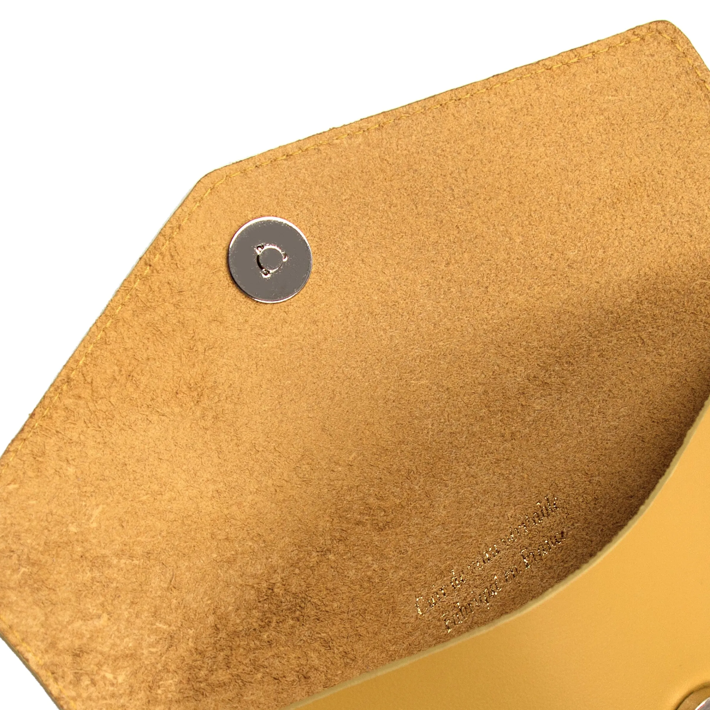 - Pochette en cuir lisse upcyclé moutarde