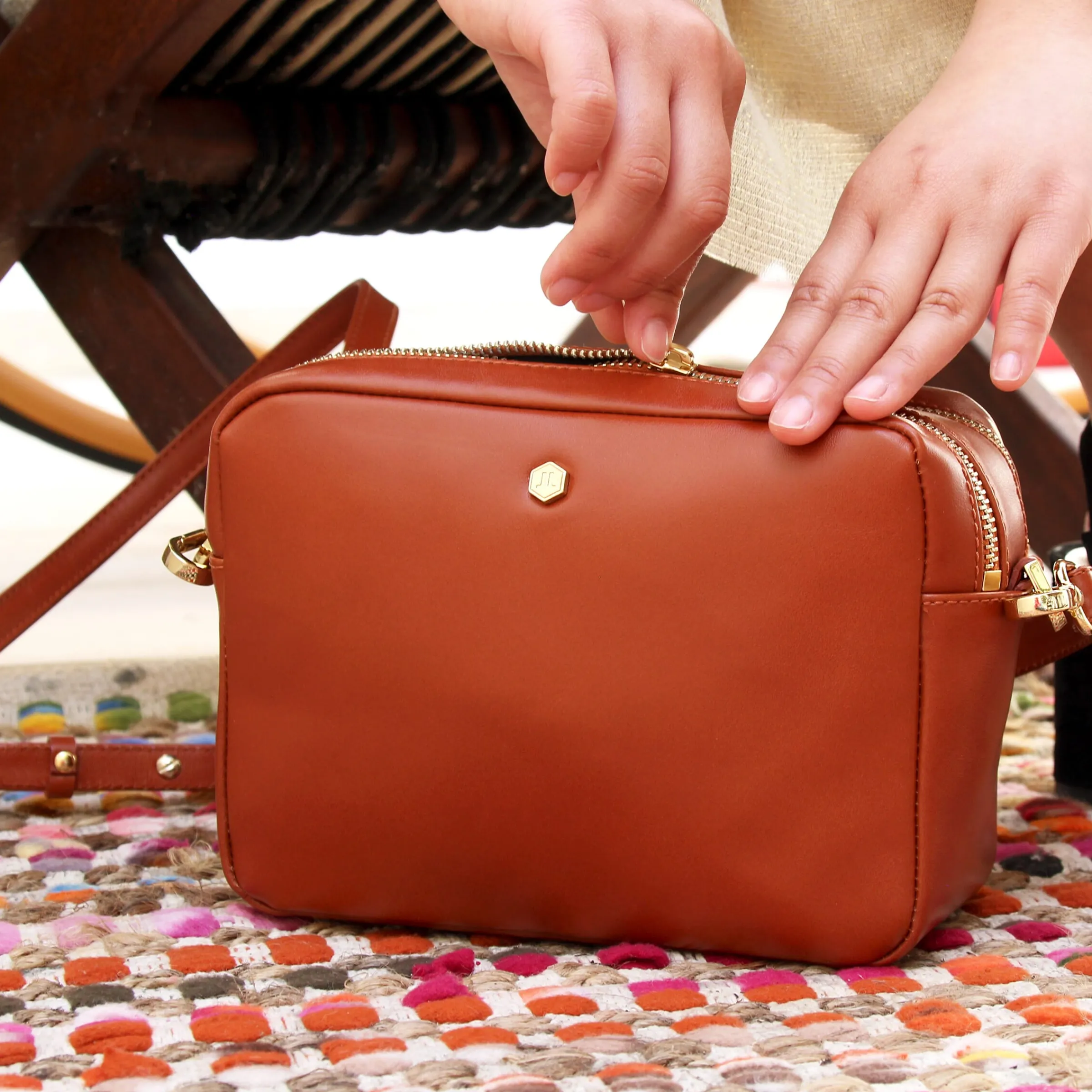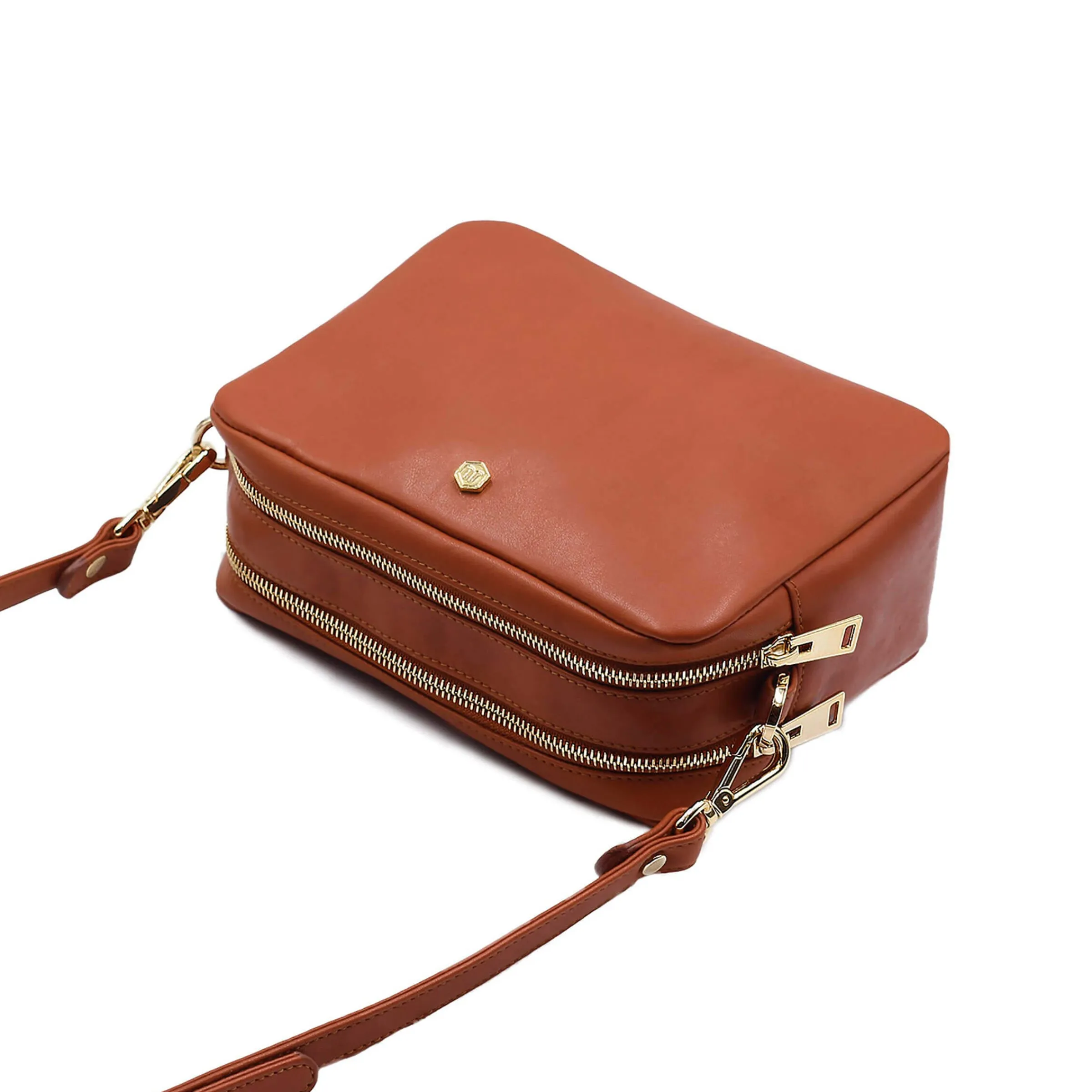 - Deux compartiments avec fermetures éclairs en laiton doré clair