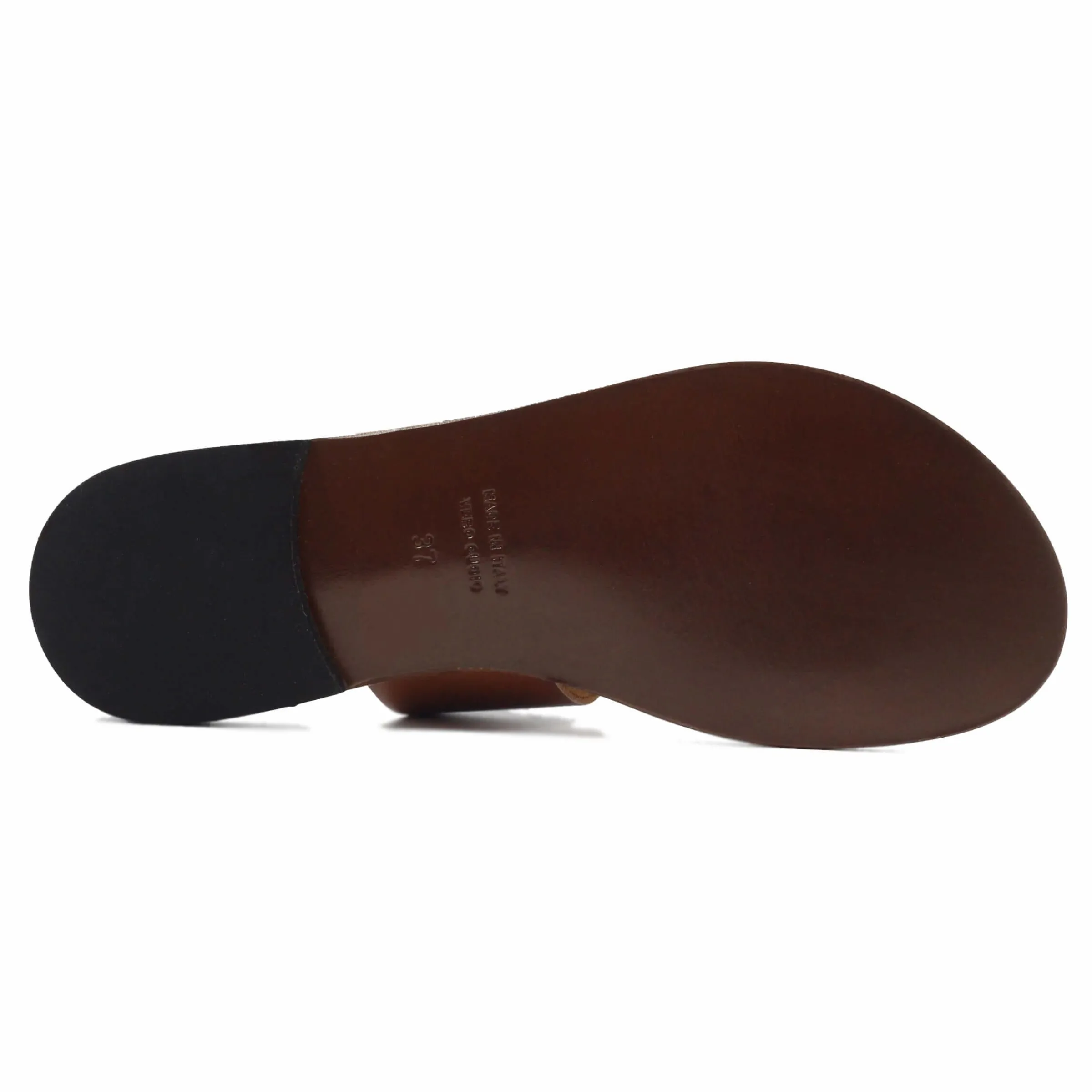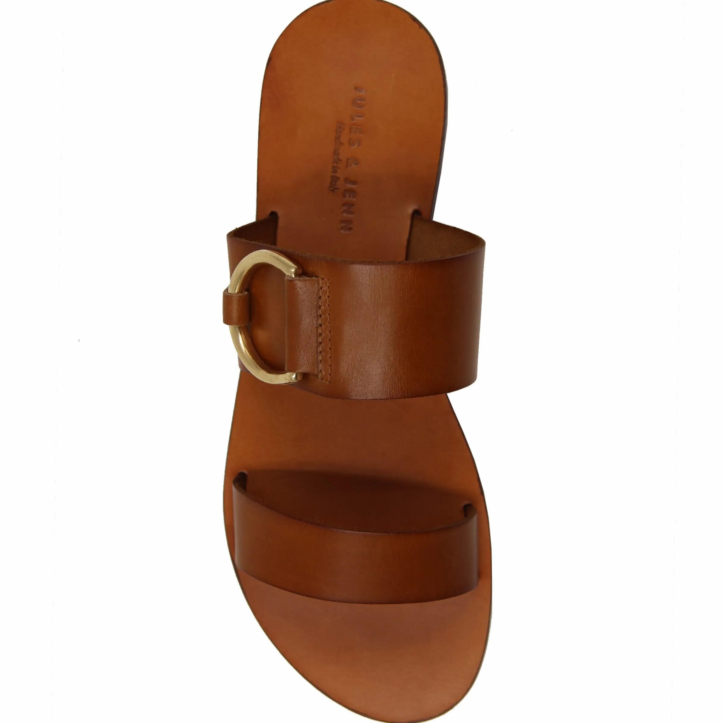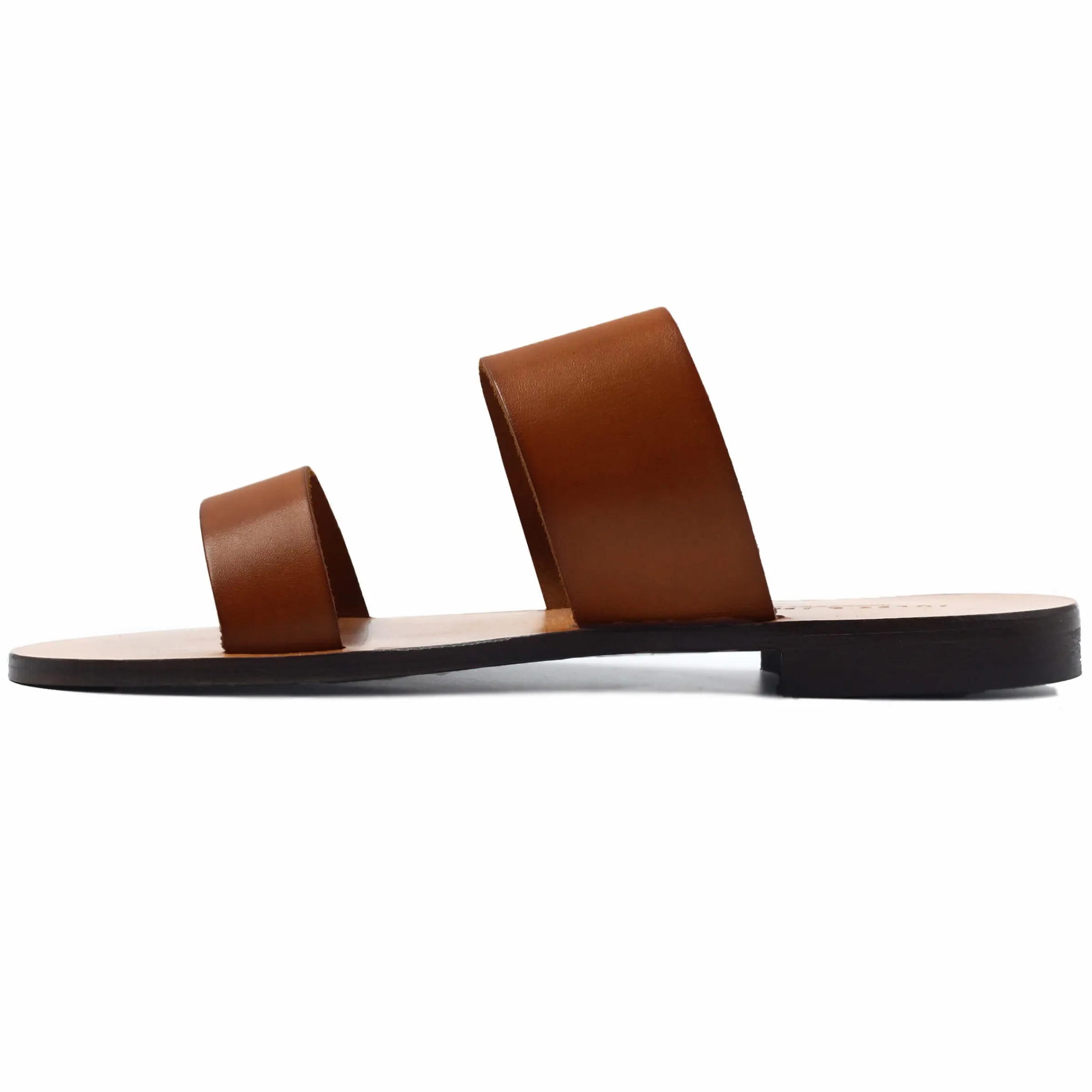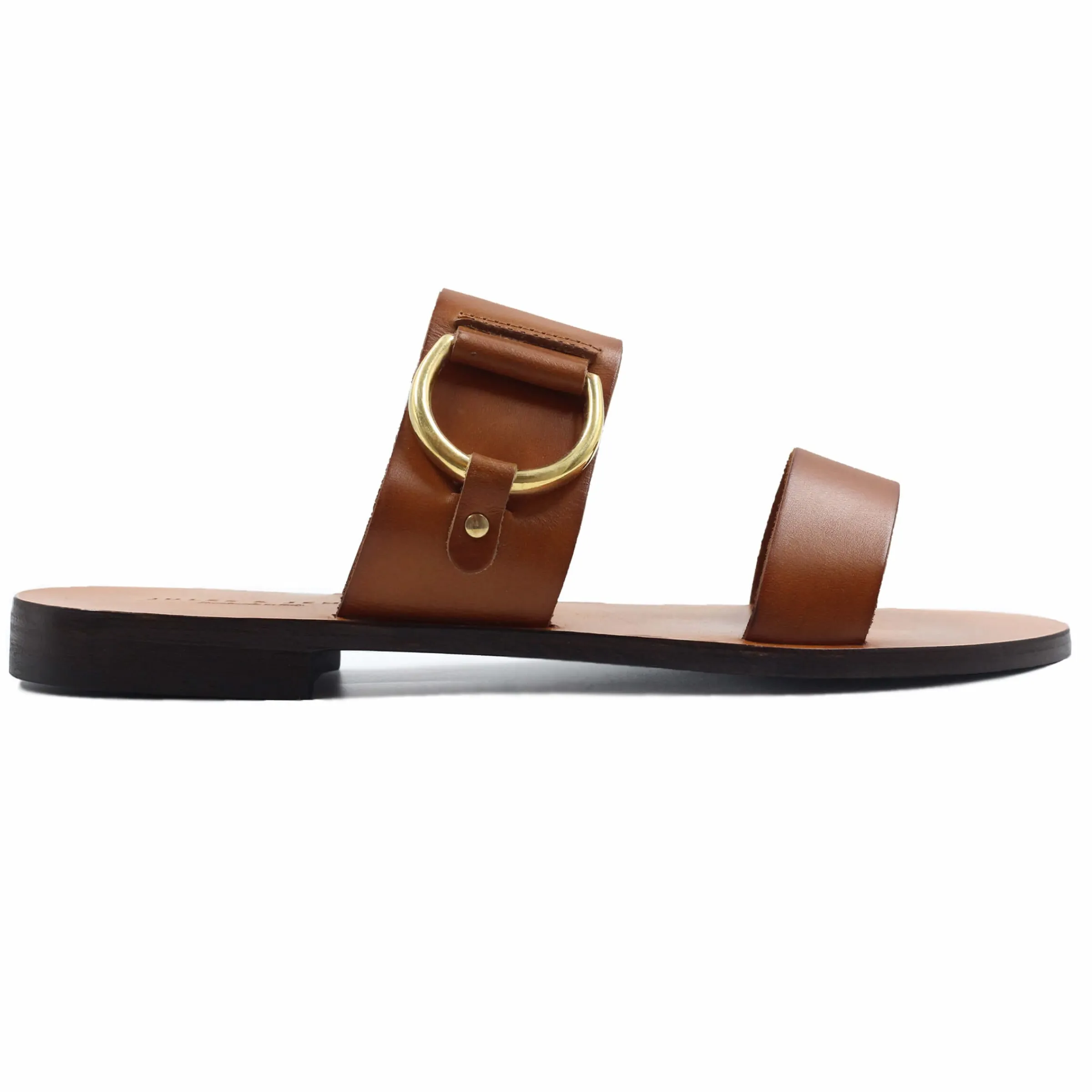 - Sandale plate en cuir de veau camel