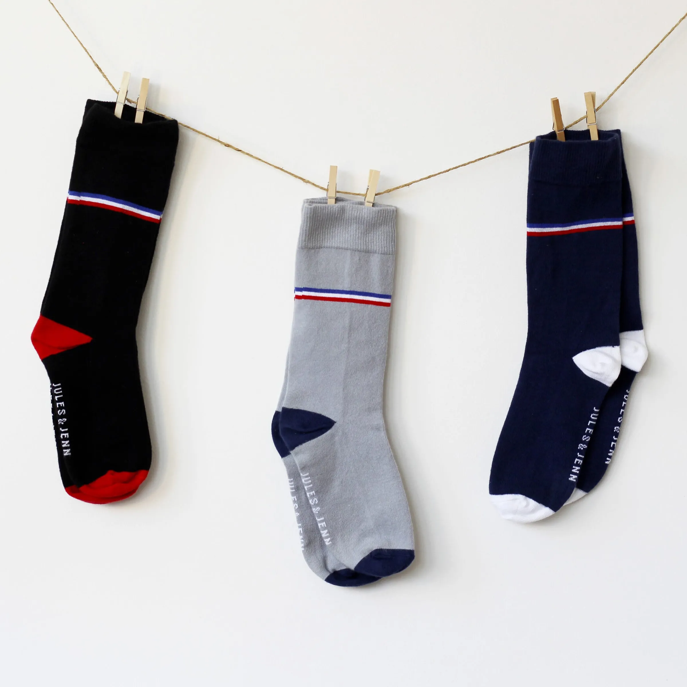 - Logo JULES & JENN sous le pied, tricoté en blanc