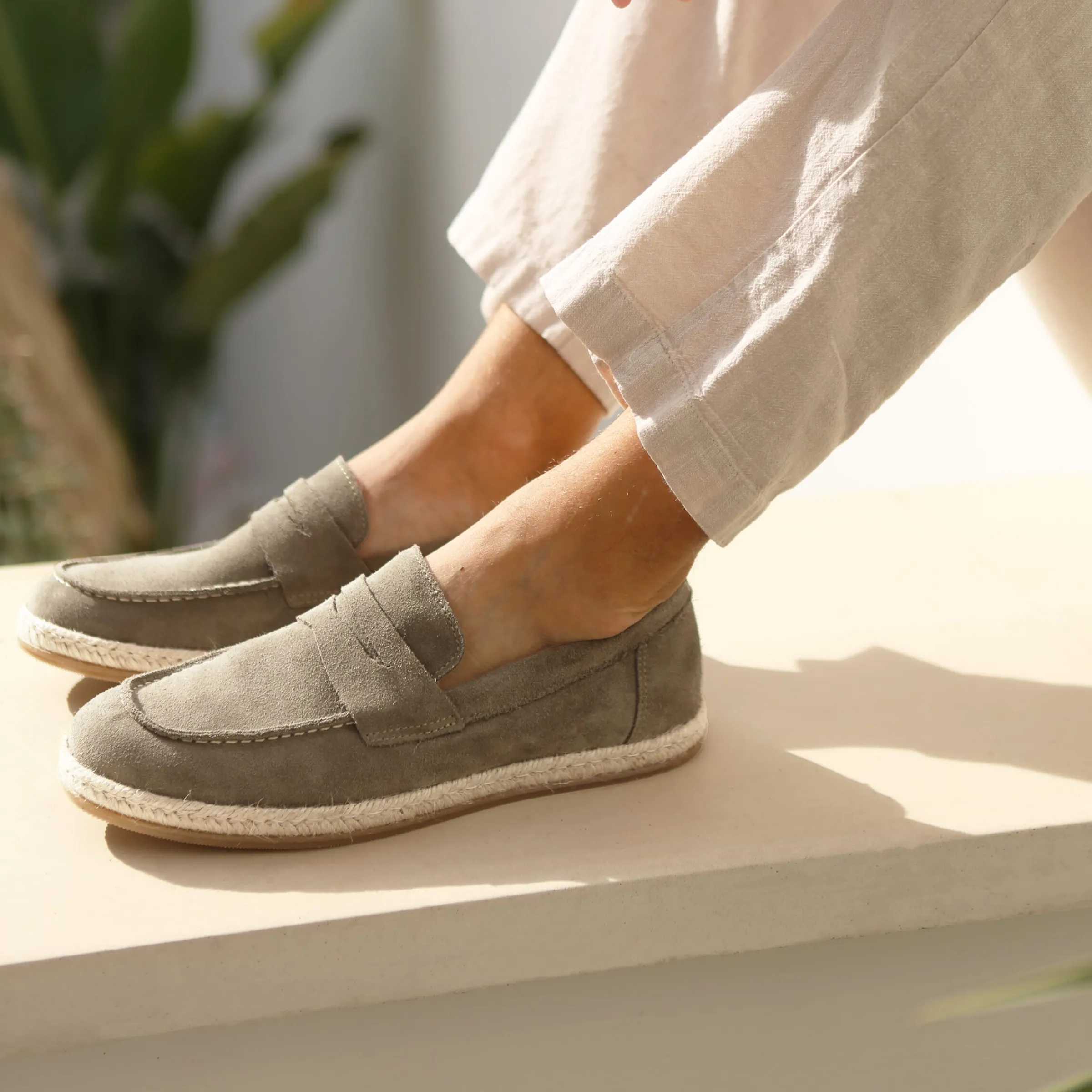 - Mocassin homme en cuir daim gris